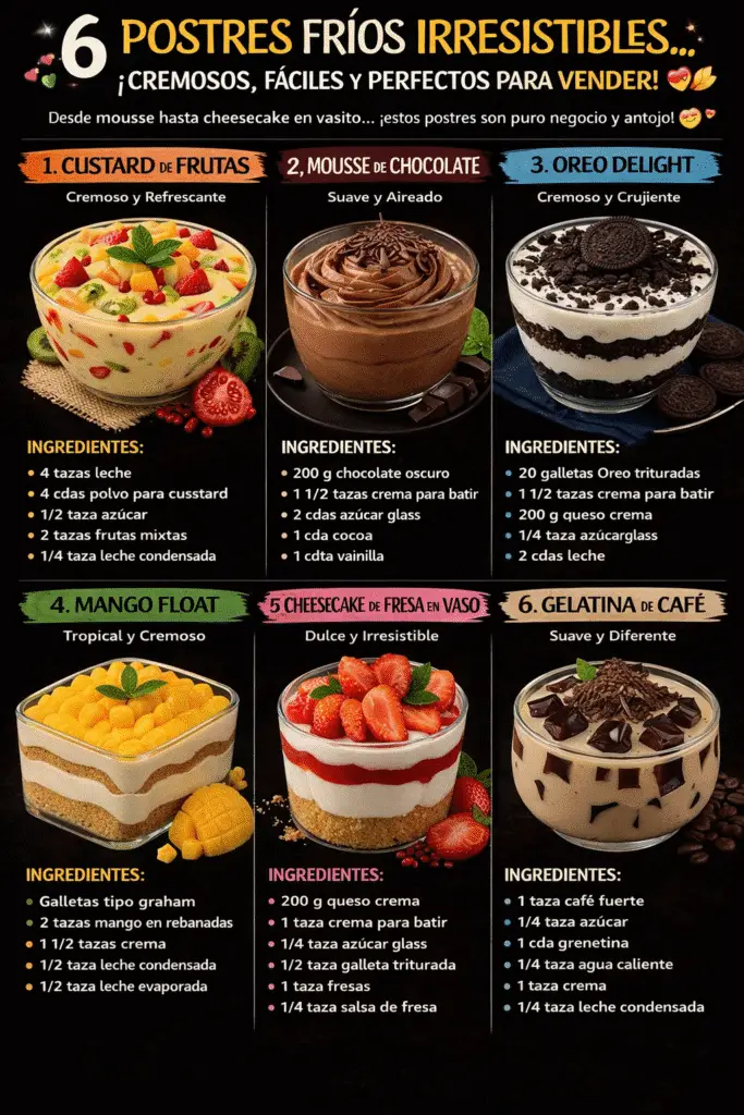 Estos 6 postres fríos son una apuesta segura: deliciosos, fáciles y con gran potencial de venta. Perfectos para cualquier ocasión o para iniciar tu propio negocio dulce.