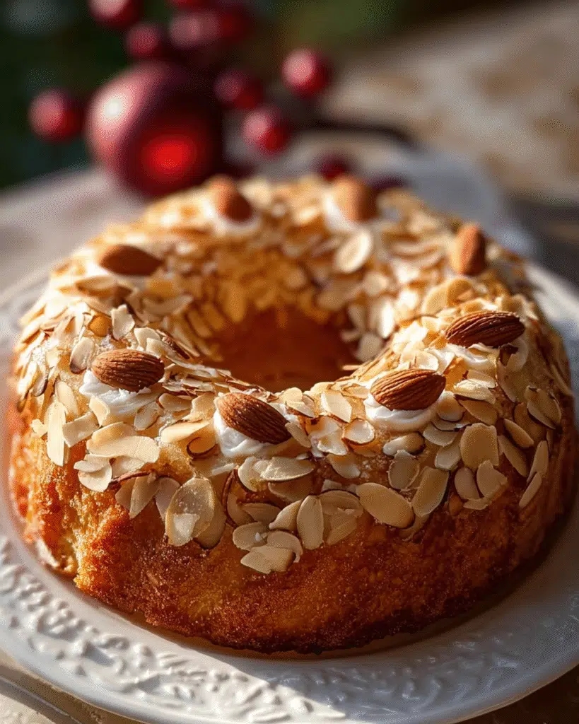 Keywords: Almond Cake, Wreath Cake, Holiday Desserts, Celebrations, Festive Cake
