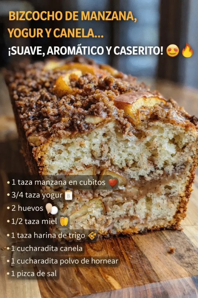 Este bizcocho es puro hogar en cada rebanada 😍. La combinación de manzana, yogur y canela crea una textura húmeda y un aroma irresistible que llena toda la cocina. Es perfecto para una merienda tranquila o incluso para vender, porque su sabor conquista a todos.