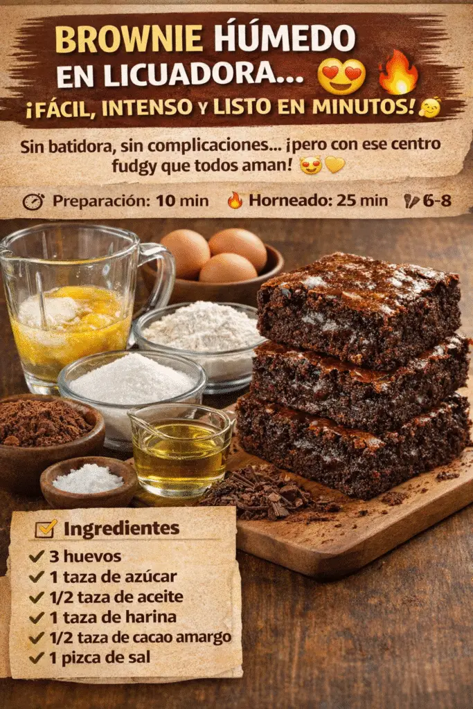 ¿Te imaginas preparar un brownie delicioso sin ensuciar medio kitchen? 😍 Este brownie en licuadora es la solución perfecta: rápido, sencillo y con ese centro húmedo tipo fudgy que todos aman. Ideal para antojos de último momento o para sorprender sin complicarte.