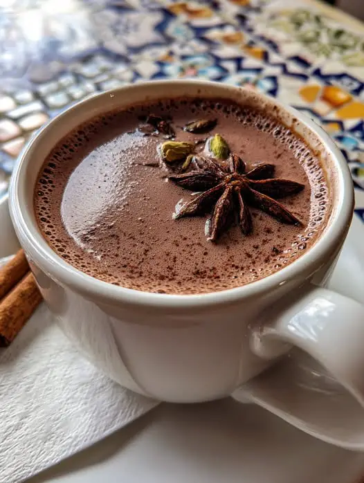 Este chocolate caliente especiado no es uno cualquiera: es el que se prepara despacio, el que perfuma la cocina, el que se sirve en una taza grande y se bebe con calma. El que parece decirte “siéntate un rato, todo está bien”.