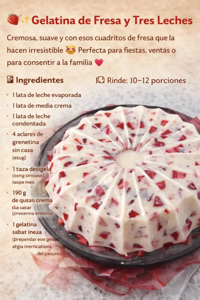 Hay postres que nunca fallan… y esta Gelatina de Fresa y Tres Leches es uno de ellos