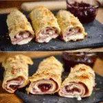 Monte Cristo Roll-Ups are best served warm. Once they are fried to perfection, place them on a plate and dust them with powdered sugar. Offer a small bowl of raspberry or strawberry jam on the side for dipping. They can be enjoyed alone or paired with a simple salad for a complete meal.