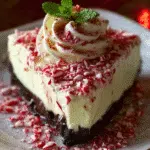 A refreshing and creamy no-bake cheesecake with peppermint flavor and a crunchy graham cracker crust, perfect for any occasion.
