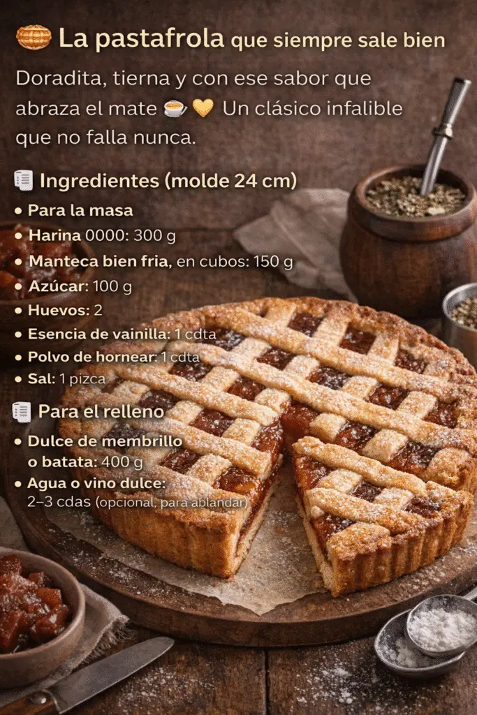 En este artículo vas a encontrar no solo la receta detallada y sin errores, sino también historia, tips clave para que la masa quede perfecta, alternativas de relleno y secretos para que tu pastafrola se conserve por varios días igual de rica.