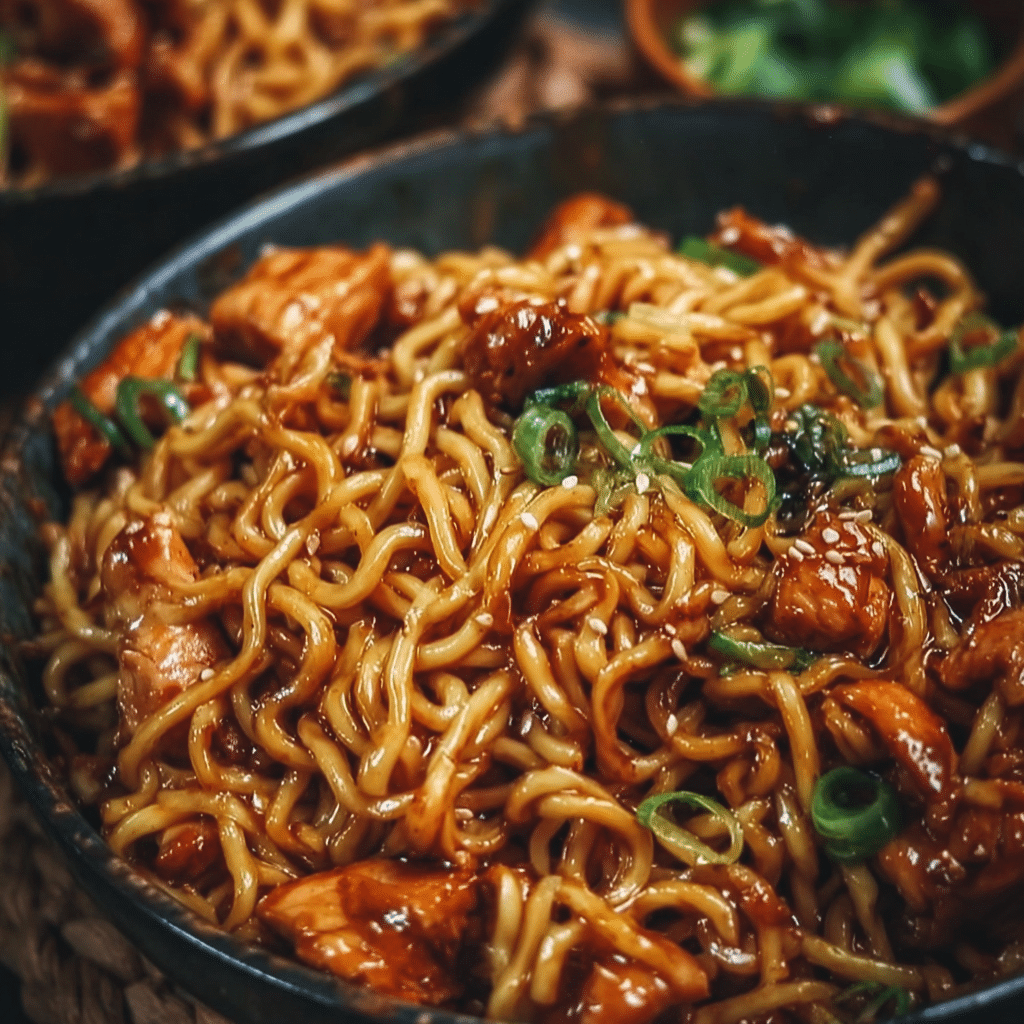A delightful combination of tender chicken, sticky sauce, and soft noodles that makes for a satisfying dinner, perfect for busy weeknights.