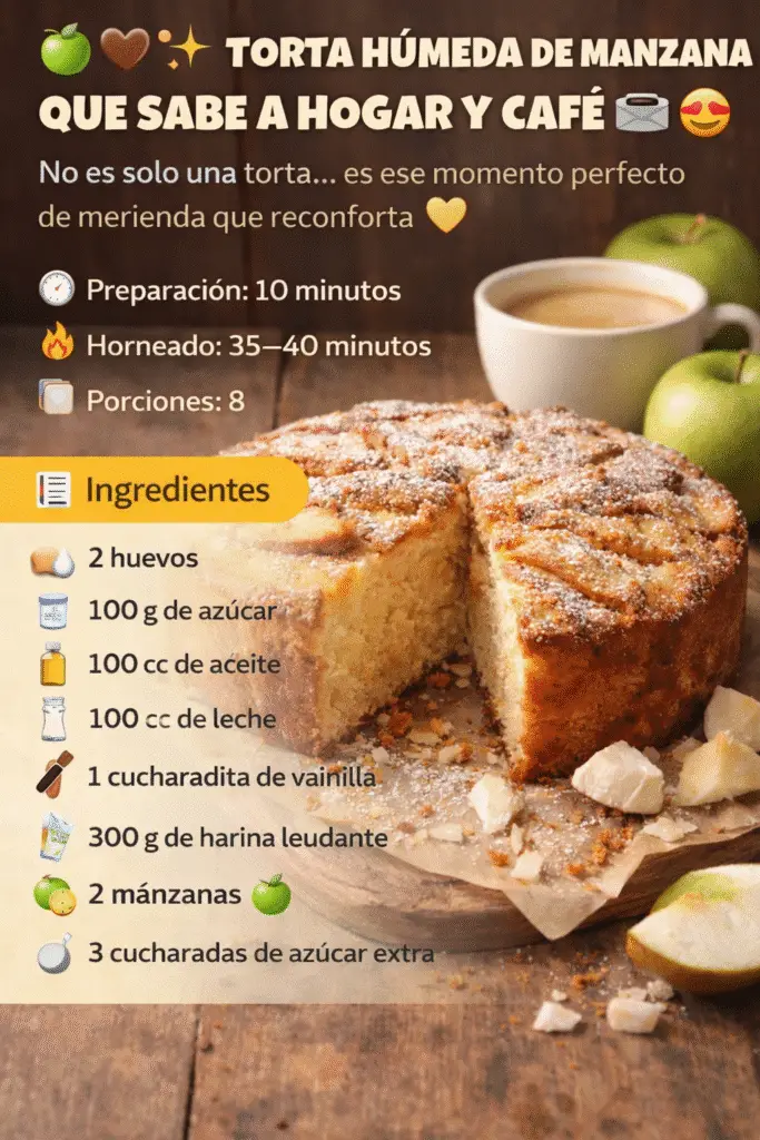 Hay recetas que no solo alimentan, sino que abrazan el alma… y esta torta húmeda de manzana es una de ellas. Perfecta para acompañar un café caliente, su textura suave y su base de manzana caramelizada la convierten en una delicia casera irresistible.